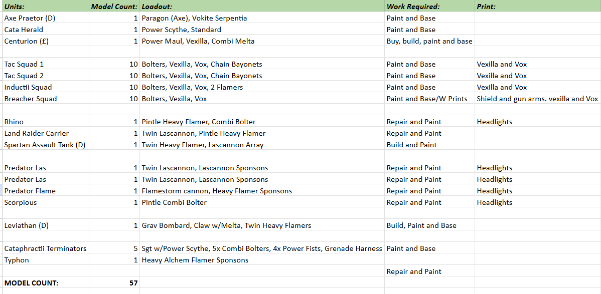 So with a clear target in mind. I wanted to dedicate week one of this challenge to adding bits to the list (The Praetor, Centurion, Spartan and Leviathan were all donated from my stash), printing the bits that were needed to make the infantry better and repairs to the vehicles. By the end of the week I wanted to have the whole army primed and ready to paint for week 2. And with tester/s to show.